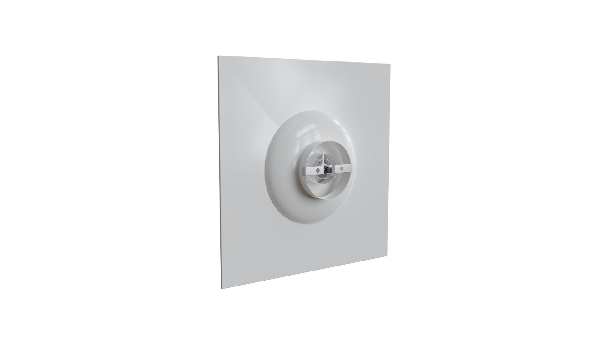 Diffuseur circulaire en acier époxy blanc mat RAL 9016 pour dalle de faux-plafond de 600x600 mm - avec déflecteurs ronds en partie centrale - raccordement Ø 200 mm - Débit d'air réglable : 200 à 400 m3/h.