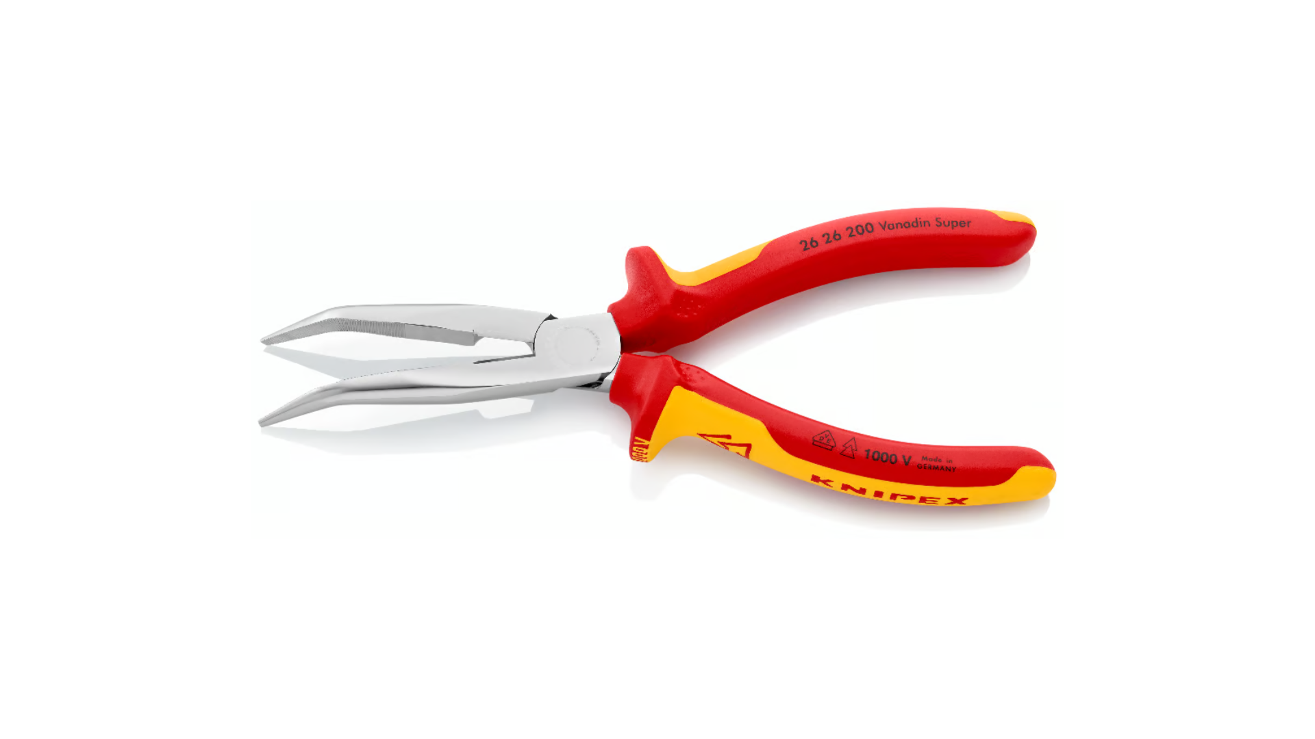 Pince becs demi-ronds 200mm coudés 40° avec tranchant Bi-matière Chromée 1000V - KNIPEX