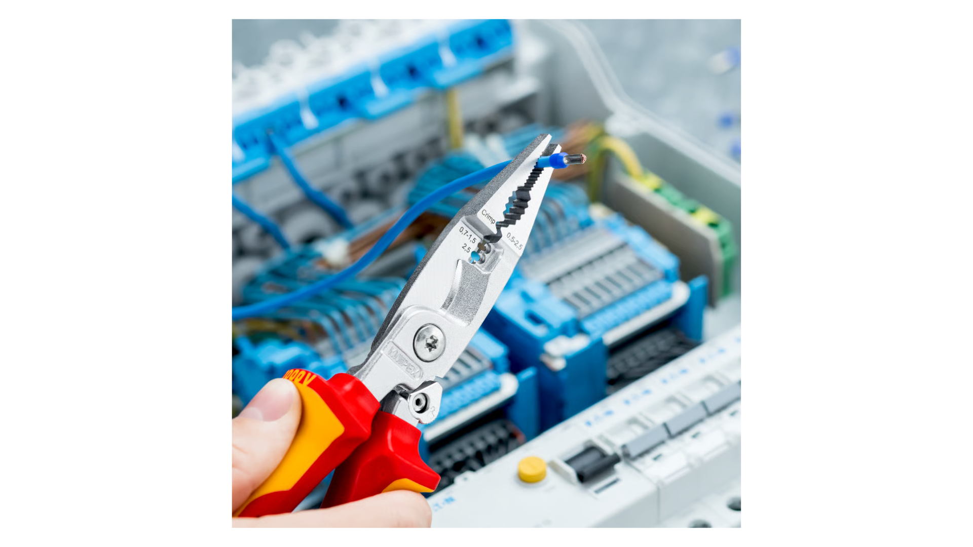 Pour saisir les formes plates et rondes, plier, ébavurer, couper les câbles, dénuder les conducteurs et sertir les embouts